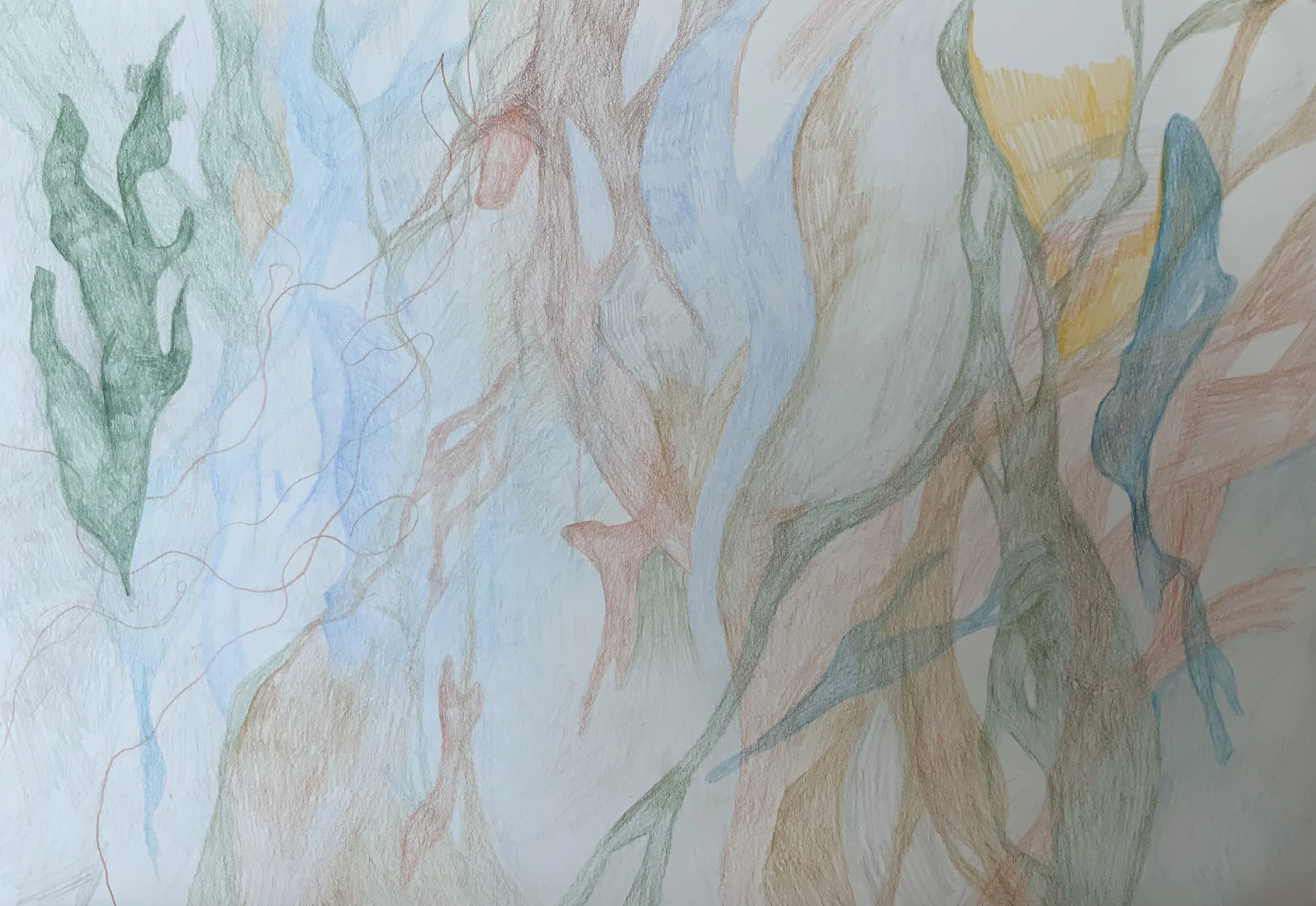 studied the artwork: Water trickling down on the dry ground nurtured a desiccated tree. As time went on, the foliage and branches absorbed the water and began to regenerate.
